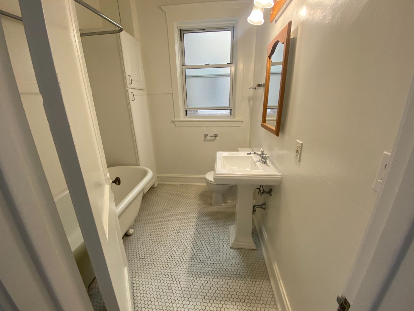 Apartment features include: a wonderful three-season Solarium located directly off of the Living Room (for spring/summer/fall al fresco dining or lounging!), a large formal Dining Room with a chandelier light fixture, an enormous eat-in Kitchen, a walk-in pantry, 10-foot high ceilings, varnished doors, mini-blinds, an old-fashioned roll rim slipper tub (with a modern shower set-up that includes a special anti-scald valve). Loads of windows bathe the apartment in sunshine!