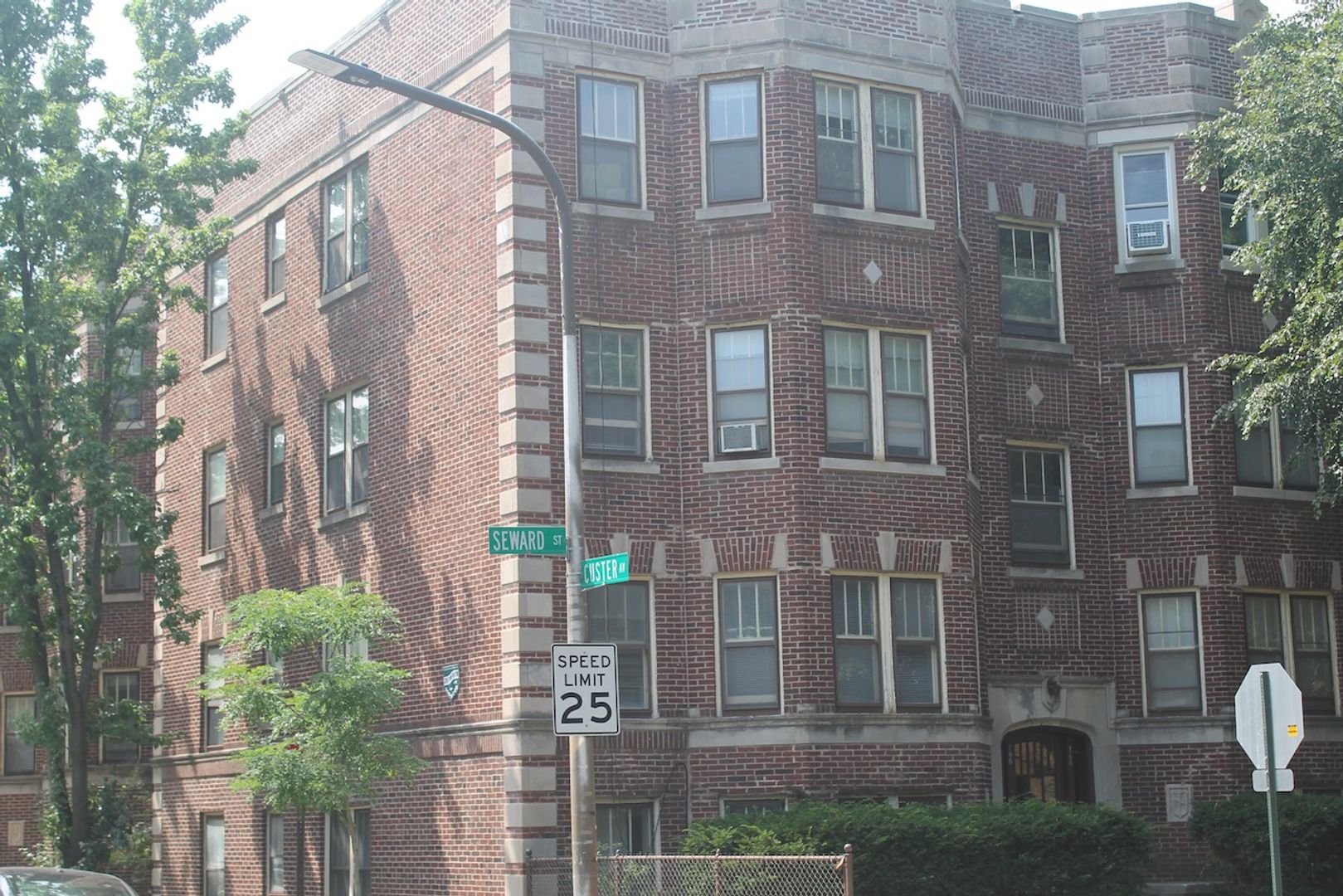 Vintage building with garages, $60/month additional, when available and within walking distance to South Blvd "L" and Main Street Metra stations, stores, restaurants, and Lake Michigan beaches.